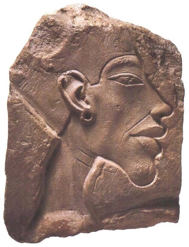 只有一个人曾经动摇过埃及风格的铁门槛。他是第十八王朝的一个国王,第十八王朝在所谓“新王国”时期,新王国是在埃及遭到严重入侵之后建立的。这个国王叫阿米诺菲斯四世(Amenophis IV),是个异端派,他打破了许多有古老传统的神圣习俗。他不愿意对他民族中的许多怪模怪样的神顶礼膜拜。在他看来,只有一个神至高无上,即阿顿(Aton)。他崇拜阿顿,将其表现为太阳形状。他仿照神的名字把自己叫做阿克纳顿(Akhnaton),还把自己的宫廷迁到其他神的祭司的势力范围以外,现称埃尔-阿玛尔那(El-Amarna)的地方。