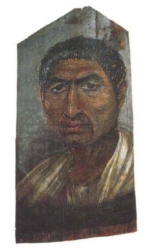 在公元后几百年中,希腊化艺术和罗马艺术已经完全取代了东方王国的艺术,甚至在东方艺术原先的据点中情况也是如此。埃及人依然把死者葬为木乃伊,但是随葬的肖像已经不是埃及风格了,而是叫熟悉希腊肖像全部技法的艺术家去画(图79)。那些肖像一定是以低价请普通工匠制作的,可是它们的生动性和写实性现在仍然使我们大为惊讶。古代艺术品看起来像它们那样有生气、那样“现代化”的寥寥无几。