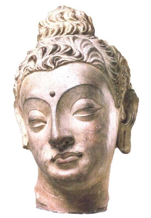 希腊和罗马艺术曾经教给人们用优美的形式去想像神祗和英雄的形象,这也有助于印度人创造他们的救世主形象。表情沉静的佛陀的美丽头像,也是在犍陀罗这一边境地区制作的(图81)。