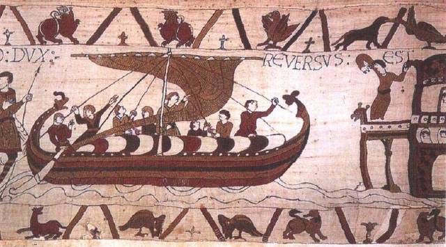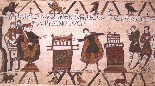 英王哈罗德向诺曼底的威廉公爵宣誓效忠,然后归航英格兰;