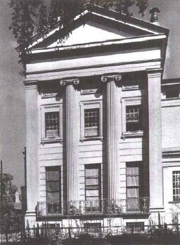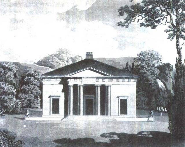 这类表现当时不止一个。在沃波尔为他的乡间宅第选择哥特式风格的时候,建筑家威廉·钱伯斯(William Chambers, 1726-1796)正在研究中国建筑物和庭园的风格,而且在克欧花园(Kew Gardens)建成了他的中国式塔(Chinese Pagoda)。的确大多数建筑家还遵循文艺复兴建筑的古典形式,但是连他们也越来越为合适的风格发愁。他们对文艺复兴以来的建筑实践和传统并非毫不怀疑。他们发现其中有许多做法在古希腊建筑物中根本没有得到证实。他们惊讶地认识到从15世纪以来一直被当作古典建筑规则的东西,是取自罗马已见衰败时期的几座建筑遗迹。热心的旅行者再次发现了伯里克利治理雅典时修建的神庙,并将它们制成了版画,它们跟帕拉迪奥书中出现的古典设计有惊人的差异。这样,那些建筑家开始一心考虑正确的风格。跟沃波尔的“哥特式复兴”成双作对的是摄政时期(Regency period, 1810-1820)盛极一时的“希腊式复兴”。当时正是英国许多主要矿泉胜地最兴旺的时期,现在人们可以在那些城镇中很好地研究希腊式复兴的建筑形式。图312是切尔滕纳姆矿泉地(Cheltenham Spa)的一座房屋,它成功地仿造了希腊神庙的纯粹的爱奥尼亚式风格(见100页,图60)。图313是多立安柱式复兴的一个实例,使用了我们在帕台农神庙(见83页,图50)中见识过的柱式原型。这是著名建筑家约翰·索尼(John Soane, 1752-1837)为一所别墅所做的设计。如果我们把它跟大约80年前威廉·肯特建造的帕拉迪奥式别墅(见460页,图301)比较一下,那么它们的表面相似反而暴露出它们的内在区别。肯特使用他见到的传统形式自由地构成他的建筑物;相比之下,索尼的设计看起来像是在练习怎样正确地使用希腊风格的建筑要素。