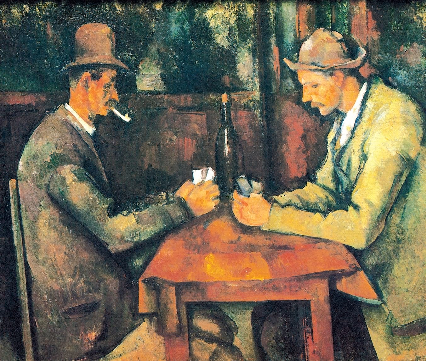 玩牌者法国 塞尚布上油画纵45×横57厘米巴黎奥赛博物馆藏 此画为画家重要的代表作之一,画中描绘着两位玩纸牌的农民,细致地刻画出两个农民玩牌时用心思考的面部表情和弯曲…