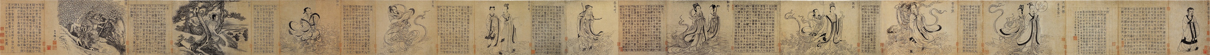 九歌图 张渥 张渥,生年不详,卒于1356年,元代画家。祖籍淮南,居杭州(今浙江杭州)。博艺多才,累考科举不中。遂致力于诗画。善绘人物。学李公麟白描,也有人说他学南…