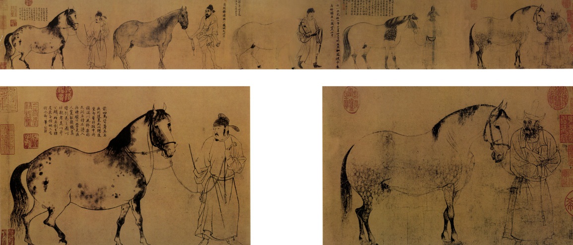 五马图 李公麟 纸本墨笔 尺寸不详 李公鱗(1049-1106).字伯时,号龙眠居士,舒州(今安徽舒城)人。道释、人物、鞍马均擅长,发展白描画法,行笔如行云流水。传世作品有《…
